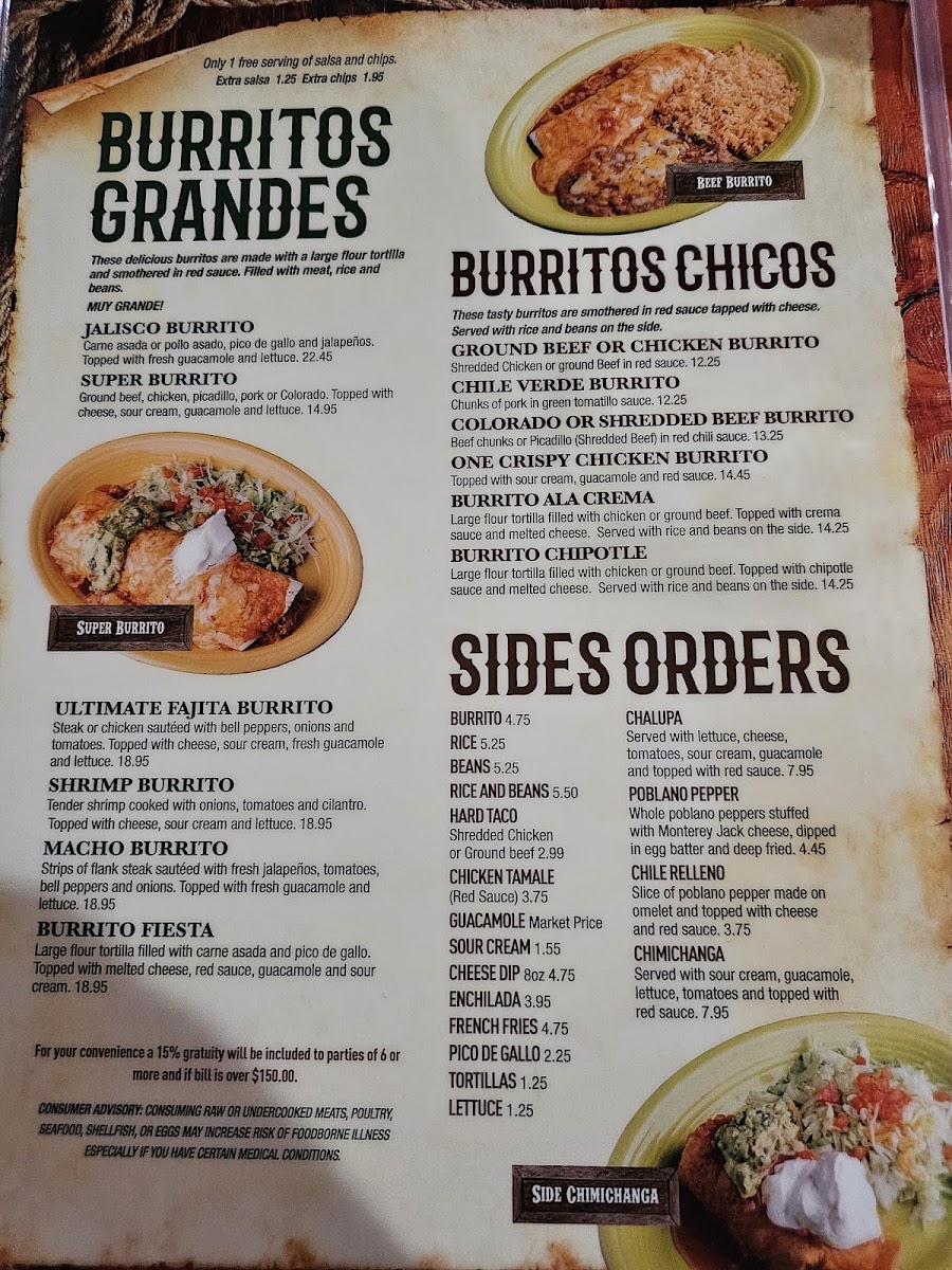 The menu proudly showcases a variety of delectable Mexican dishes, and customers rave about the Super Burrito, which has been highlighted as a must-try by satisfied patrons. It's generously stuffed and bursting with flavors that transport you straight to the heart of Mexico. You can also enjoy freshly made chips and salsa to start your meal, along with a luscious queso dip that can be enjoyed with or without chorizo, pleasing both vegetarians and meat-lovers alike. And let’s not forget the famous Cadillac margarita, loved for its refreshing taste and perfect balance.
